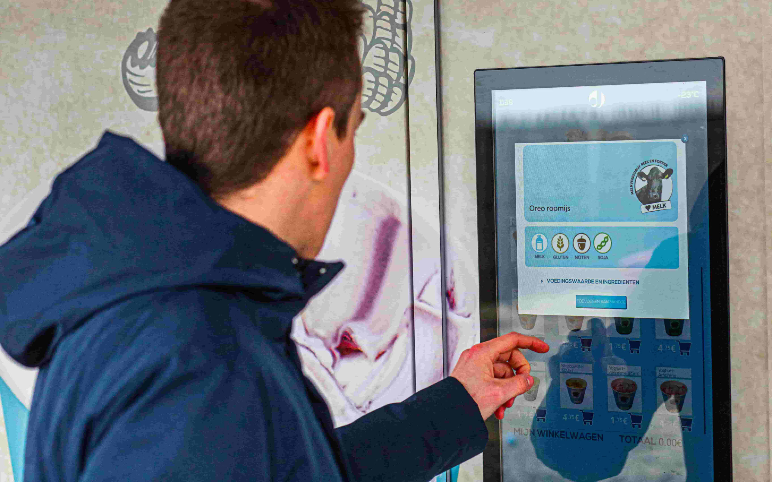 De Nuuk vriesautomaat is de ideale oplossing voor de uitgifte van diverse ijssoorten, zoals waterijsjes, sorbetijs of ambachtelijk schepijs. Met een interne temperatuur van -21°C biedt hij optimale bewaaromstandigheden voor het uitgeven van ijs. Klanten kunnen eenvoudig op het 21,5-inch touchscreen hun gewenste ijsje kunnen selecteren aan de hand van productafbeeldingen. Het glazen front maakt een keuze maken nog makkelijker en versnelt het koopproces. Bovendien is de Nuuk (diep)vriesautomaat volledig aanpasbaar met een custom wrapping, waardoor u de uitstraling kunt afstemmen op uw merk of locatie.