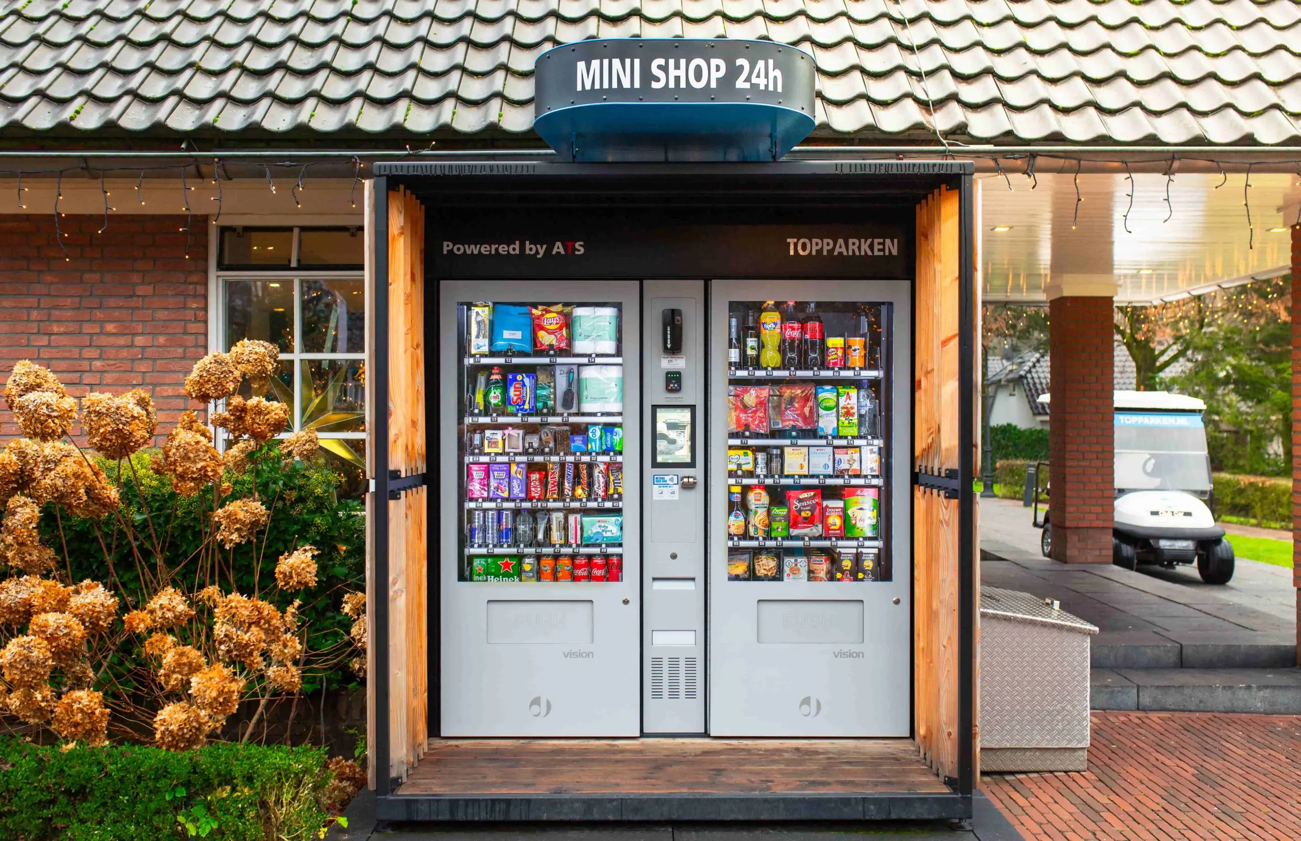 De boodschappen-automaten op Landgoed de Scheleberg zijn geleverd door Vendolution in opdracht van Automaten Totaal Service (ATS). Wij hebben al jaren een goede samenwerking en met elkaar realiseren we projecten waar we trots op zijn. ATS heeft ook de Mini-shop ombouw van de automaten gerealiseerd. Zo springen de boodschappen-automaten nog meer in het oog.