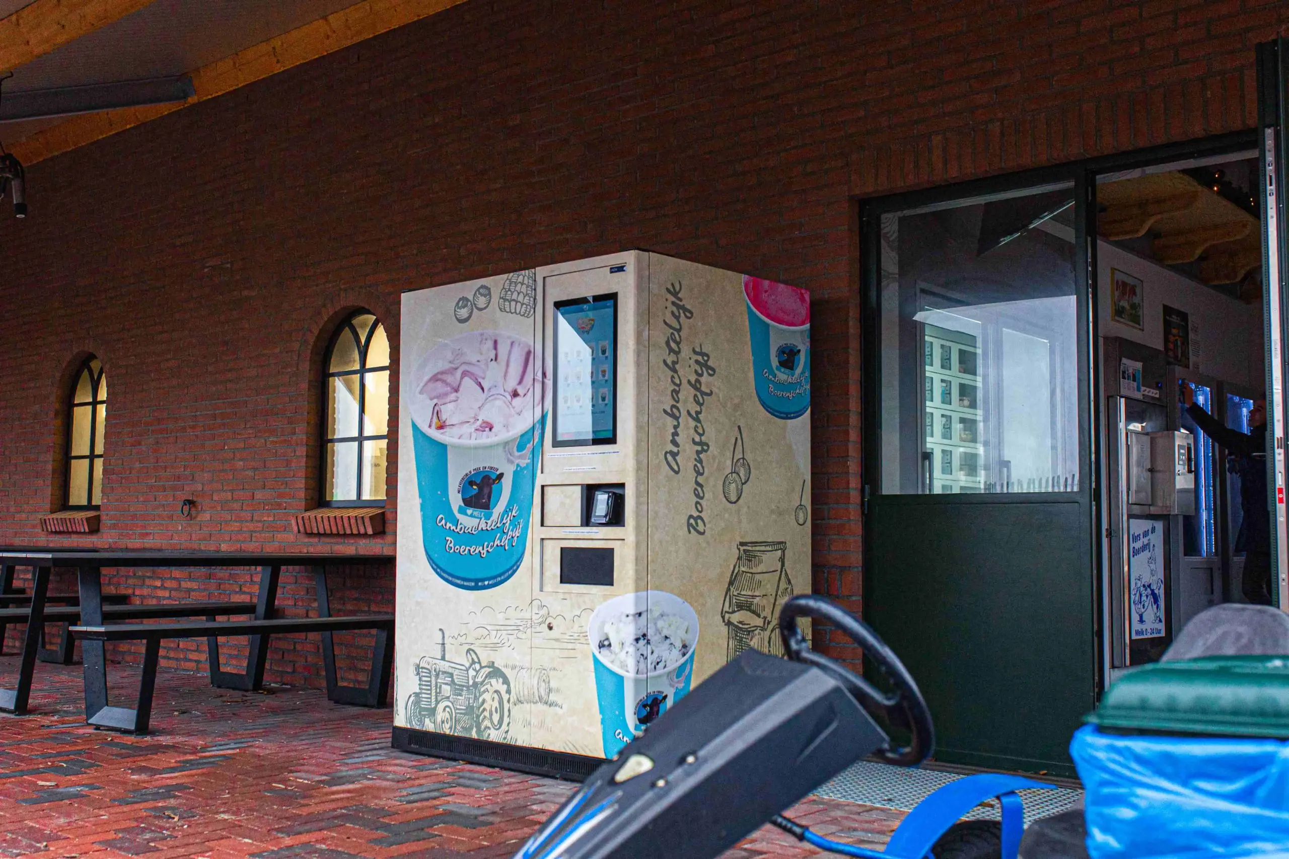 Er wordt gebruik gemaakt van twee Vision ES-Plus automaten voor de verkoop van zuivel-producten. De ijs-verkoop wordt gedaan met een Nuuk vriesautomaat. De twee zuivel-automaten bevinden zich binnen in de boerderijwinkel, waar ook een melktap is geĆÆnstalleerd voor klanten die verse melk willen tappen. De ijs-automaat is onder een overkapping net buiten de winkel geplaatst, waar ook tafels en banken staan zodat klanten even kunnen gaan zitten.